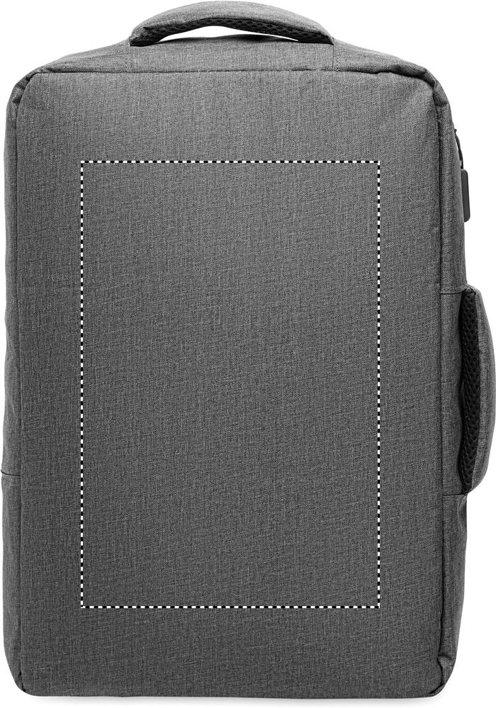 Produkte Ein sicherer 15-Zoll-Laptop-Rucksack aus 300D RPET mit einer 210D RPET-Fütterung und individuell anpassbarem Druck