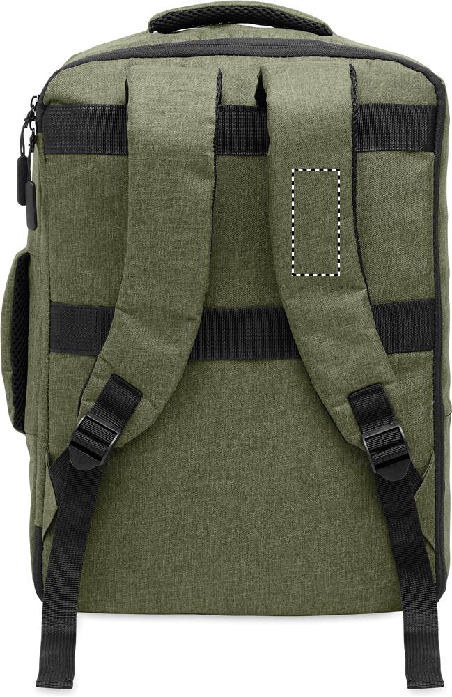Logotrade Geschäftsgeschenke das Foto: Ein sicherer 15-Zoll-Laptop-Rucksack aus 300D RPET mit einer 210D RPET-Fütterung und individuell anpassbarem Druck
