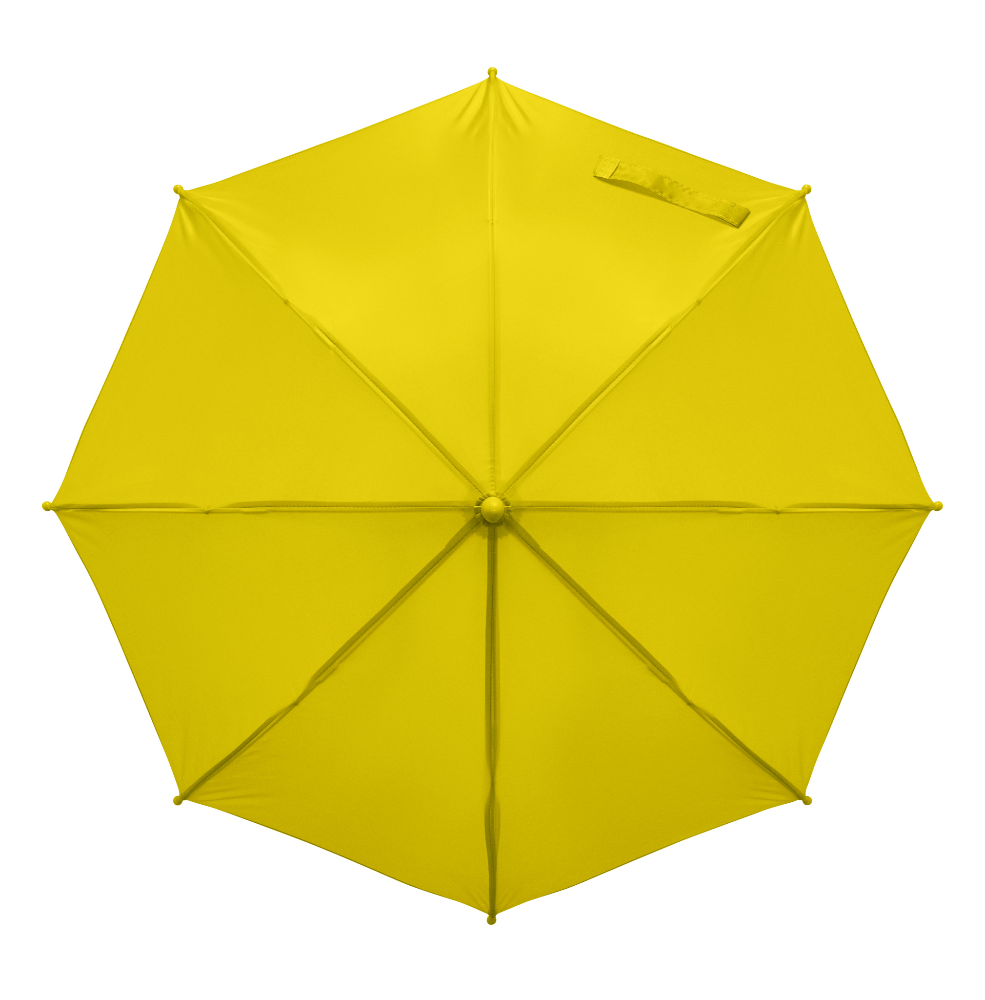 18'' Regenschirm für Kinder aus 190T Polyester. Stock und Stangen aus Metall. Griff, Spitzen und Krone aus PP. Automatische Öffnung, manuelle Schließung.