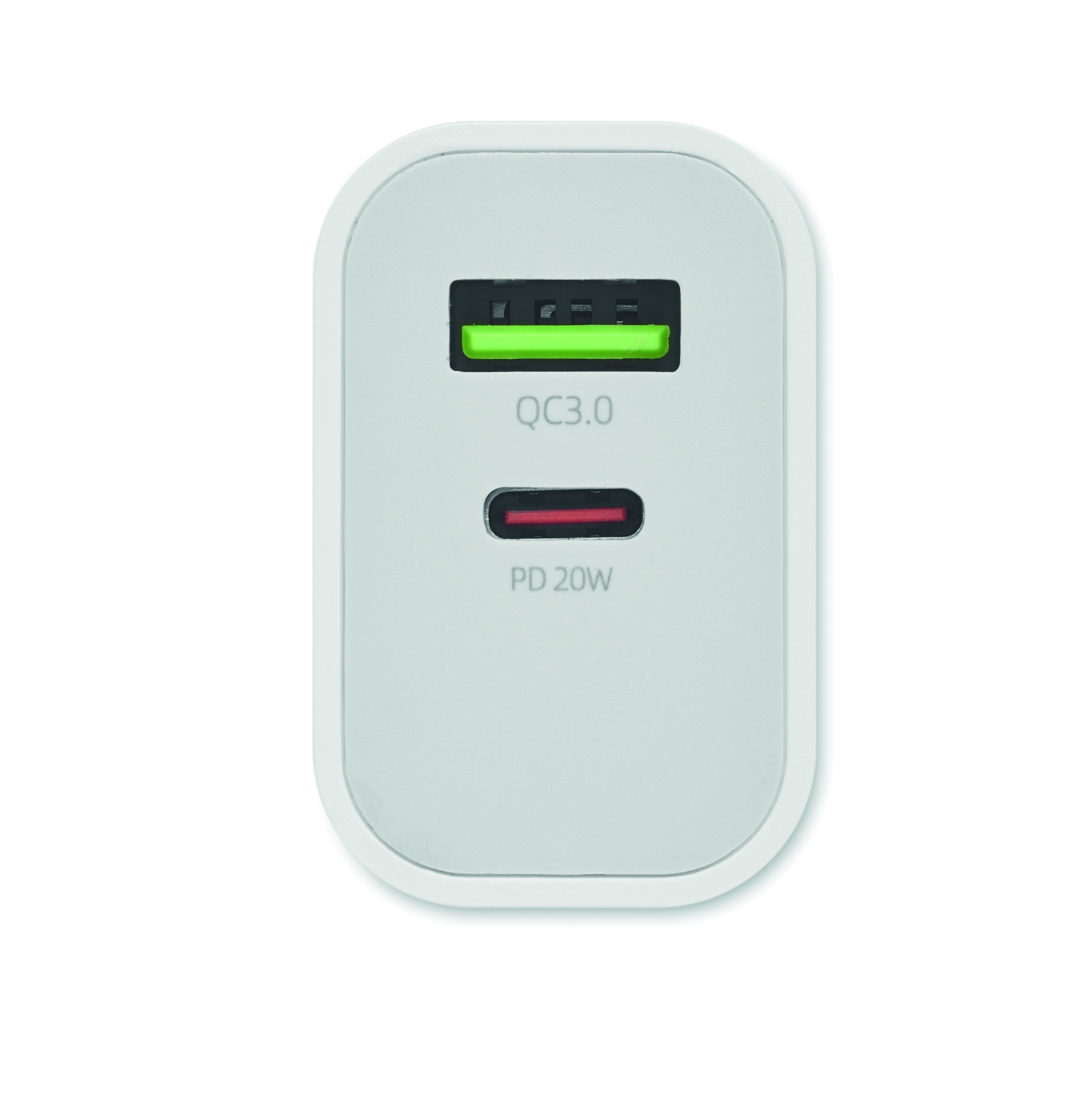 2-poliges EU-Ladegerät. Unterstützt die Schnellladetechnologie (18 W). 2 Anschlüsse: Typ-A und Typ-C. Unterstützt Quick Charge 3.0/Power Delivery-Technologie. Nicht für den Einsatz in Großbritannien geeignet.