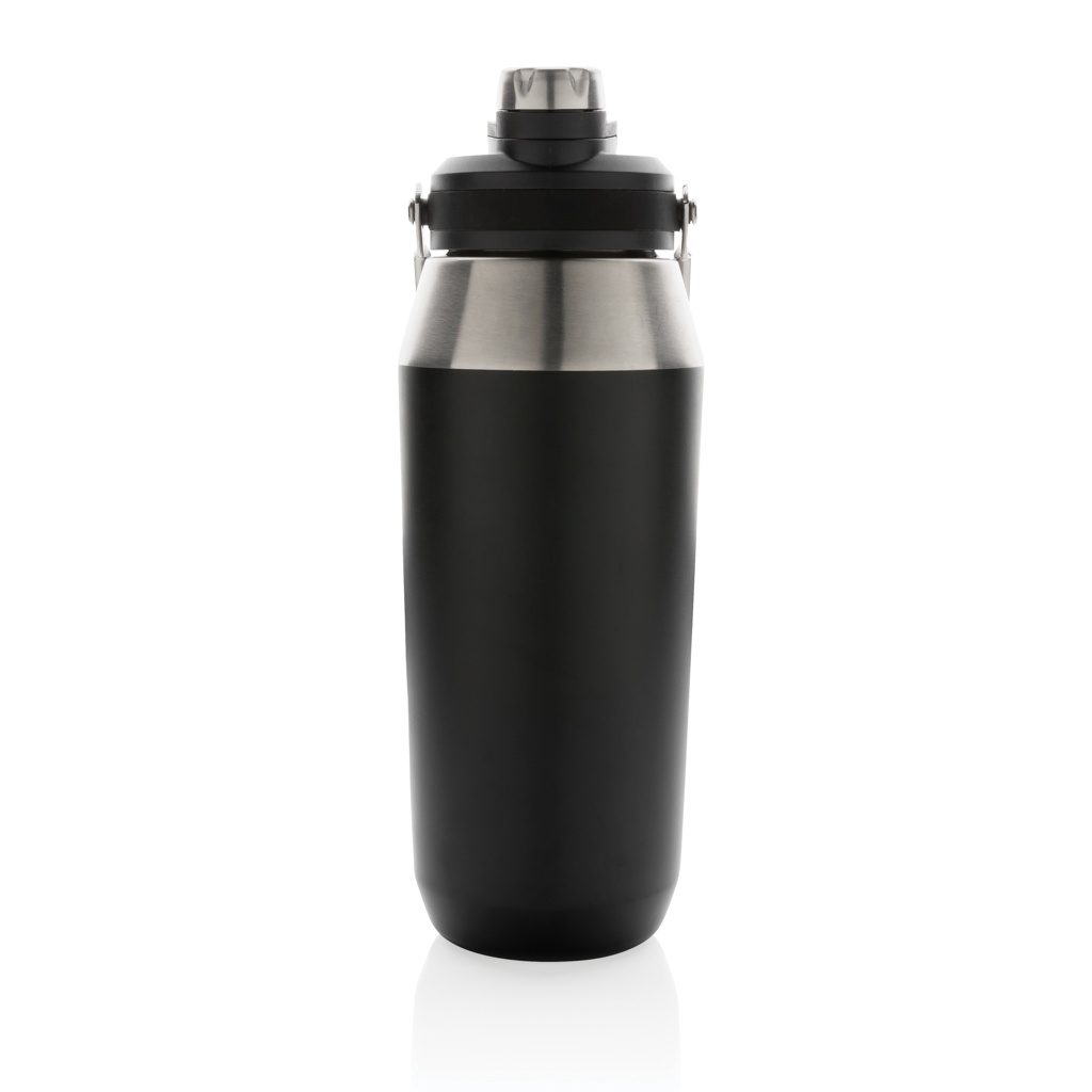 1L Vakuum StainlessSteel Flasche mit Dual-Deckel-Funktion, Schwarz