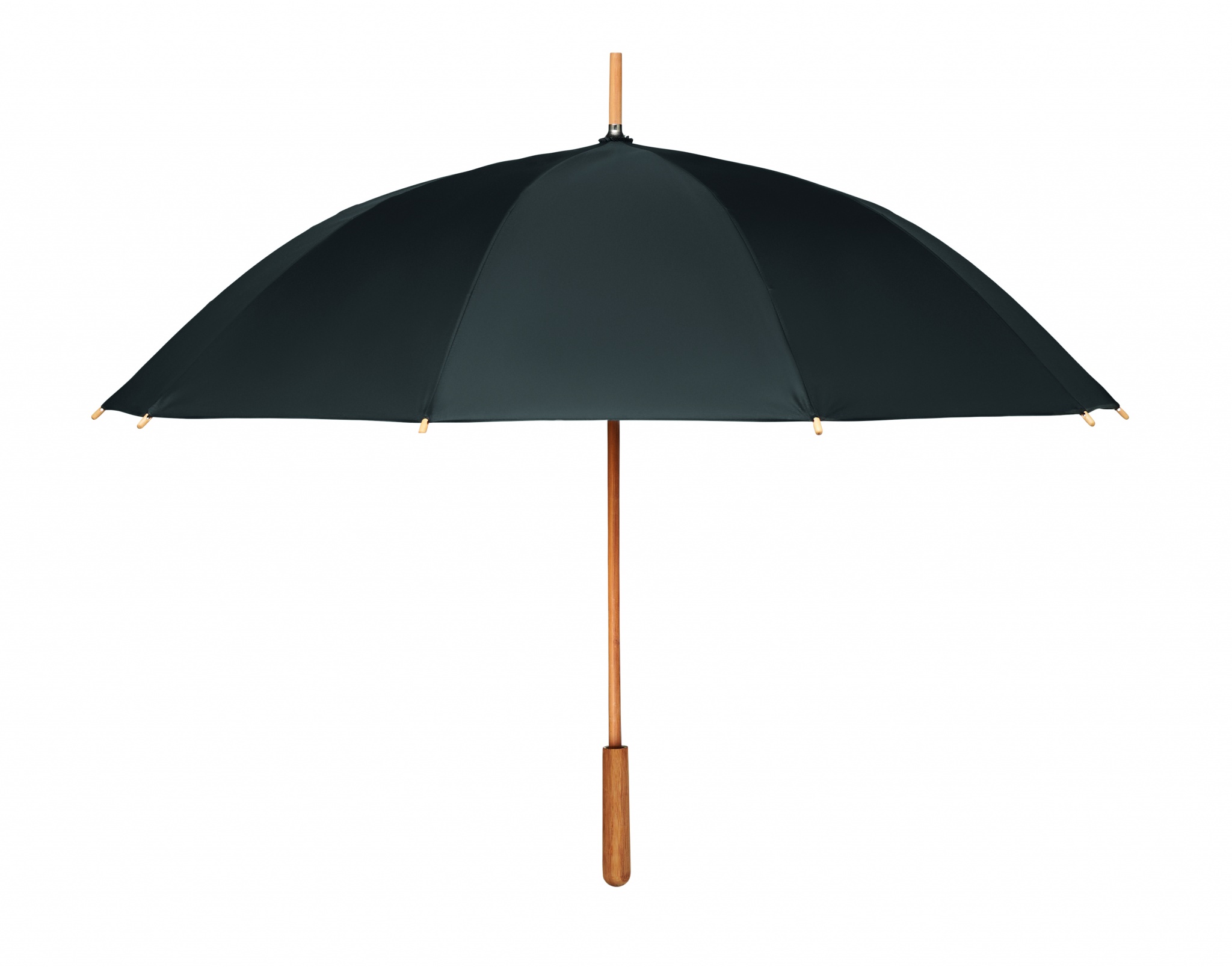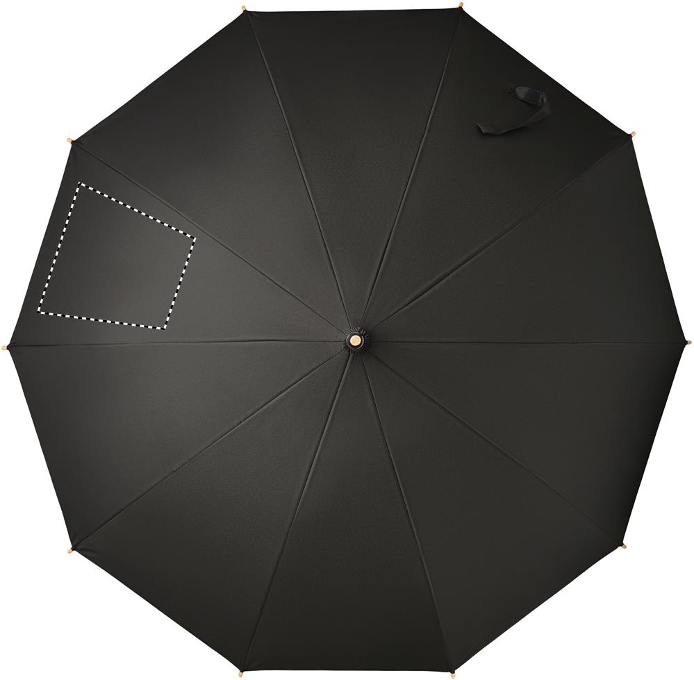 23,5'' Regenschirm aus 190T RPET-Pongee. Windbeständig. Stock, Spitzen und Griff aus Bambus, Stangen aus Fiberglas. Manuelle Öffnung und Schließung. Bambus ist ein natürliches Produkt, es kann daher zu leichten Abweichungen in Farbe, Dekor und Maßen kommen.