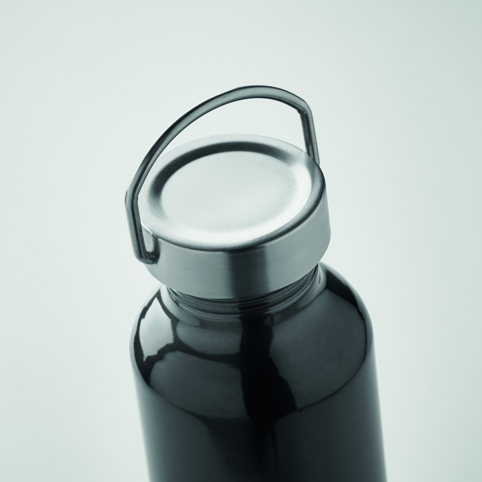 500-ml-Flasche aus recyceltem Aluminium mit einem Deckel aus Edelstahl mit Griff, Schwarz