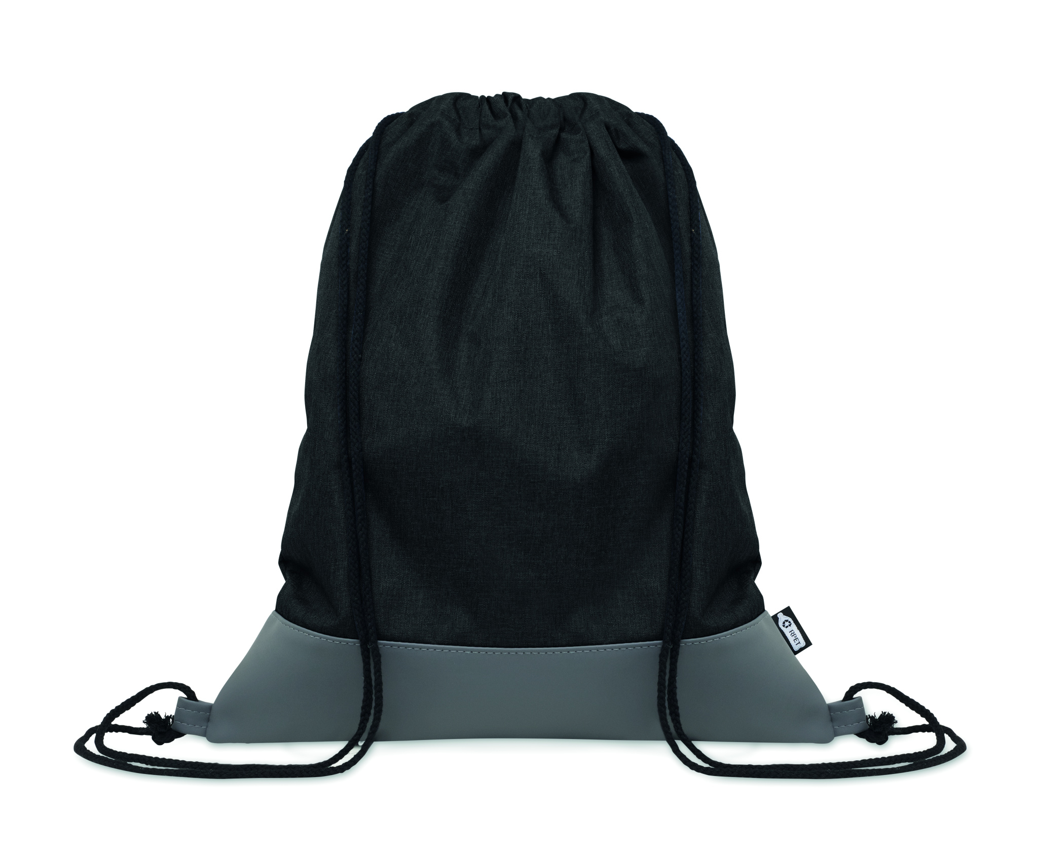 Beutel mit Kordelzug aus 2tone 300D RPET Polyester mit Besatz aus weichem PU und Polycotton-Kordel.