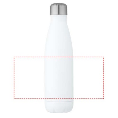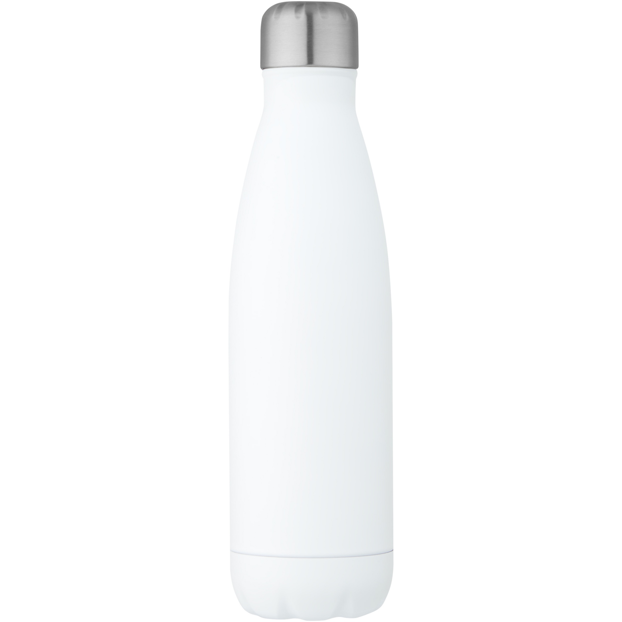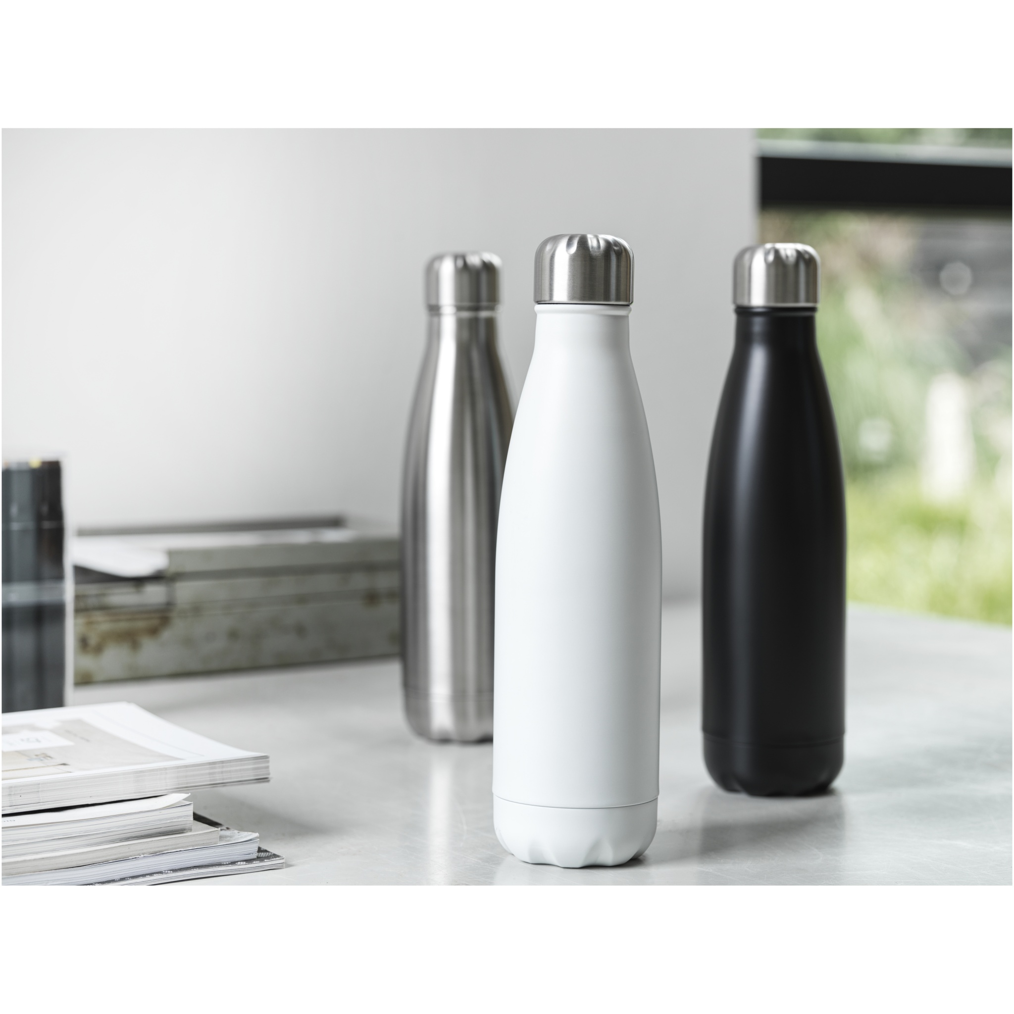 Vakuumisolierte, RCS-zertifizierte Flasche aus recyceltem Edelstahl mit kultigem Design, die Getränke mehrere Stunden lang heiß oder kalt hält. Mit einem Sockel, der in die meisten Getränkehalter passt, ist diese elegante Wasserflasche ein perfekter Werbeartikel. Geprüft und zugelassen nach deutschem Lebensmittelsicherheitsgesetz (LFGB) und gemäß REACH Verordnung auf Phtalate getestet. Das Fassungsvermögen beträgt 500 ml. Verpackt in einer Geschenkbox aus Recyclingkarton.