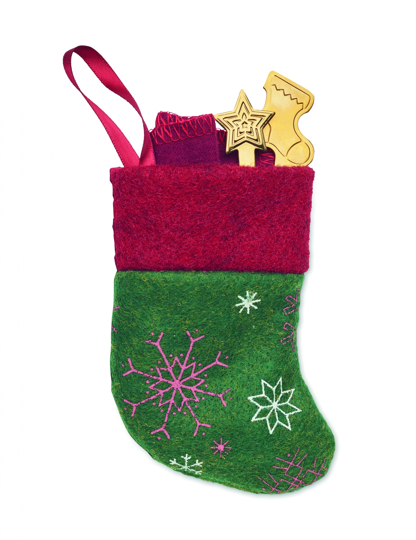 Dessert-Besteck, bestehend aus Löffel und Gabel aus Edelstahl und Serviette aus Baumwolle 150 g/m². Lieferung in kleinem Weihnachtsstiefel.