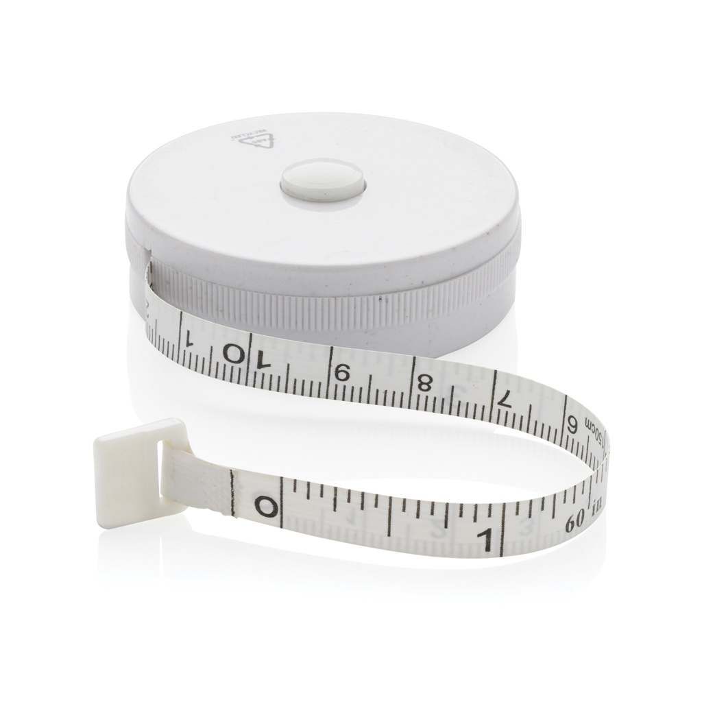 Schneidermaßband aus RCS recyceltem Kunststoff und Bambus, Weiß