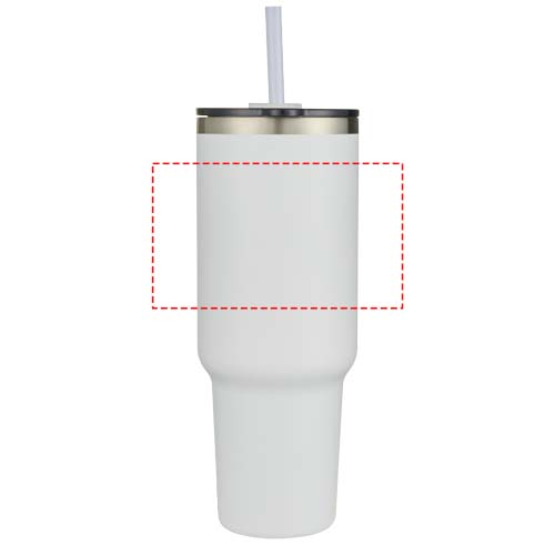 RCS-zertifizierter doppelwandiger Kupfer-Vakuum Isolierbecher aus 91 % recyceltem Edelstahl, der Getränke mindestens 24 Stunden kalt oder 9 Stunden heiß hält. Ausgestattet mit einem Tritan Trinkhalm und einer Deckelschiebefunktion, die ein Verschütten verhindert. Der schwenkbare Druckdeckel aus 100 % recyceltem Kunststoff hält den Trinkhalm sicher fest und lässt sich leicht drehen, um die Trinköffnung freizulegen. Langlebige Pulverbeschichtung auf der Außenseite. Fassungsvermögen: 1200 ml. Nur von Hand reinigen.