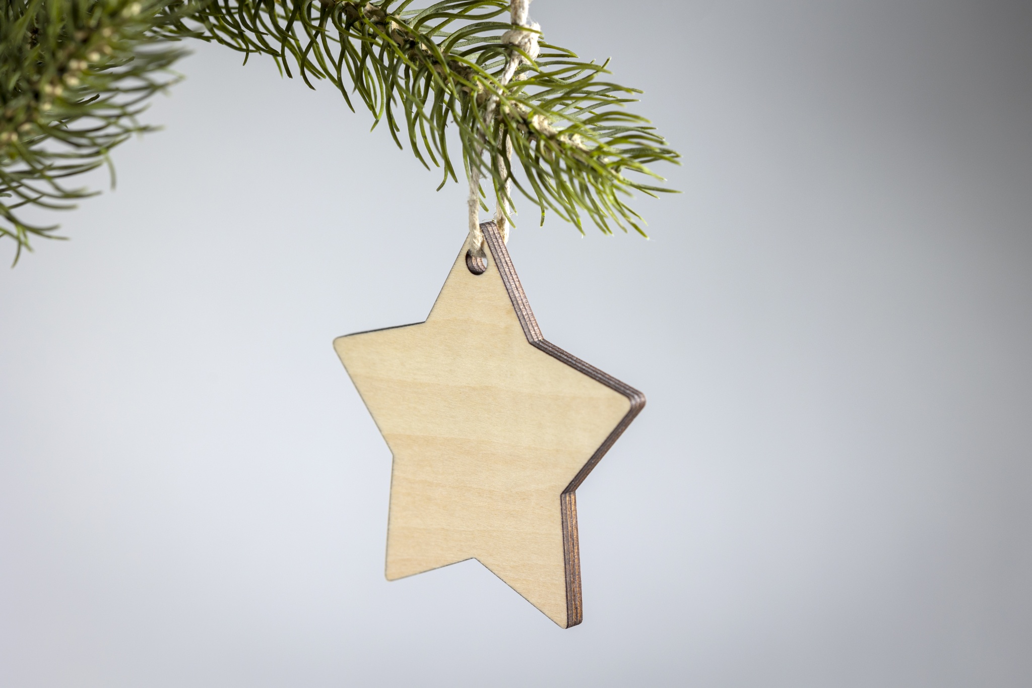 Weihnachtsdeko Stern. Sperrholz mit Jute-Aufhänger. Ideal für Sublimationsdruck (Aufdruck in weiß ist nicht möglich).