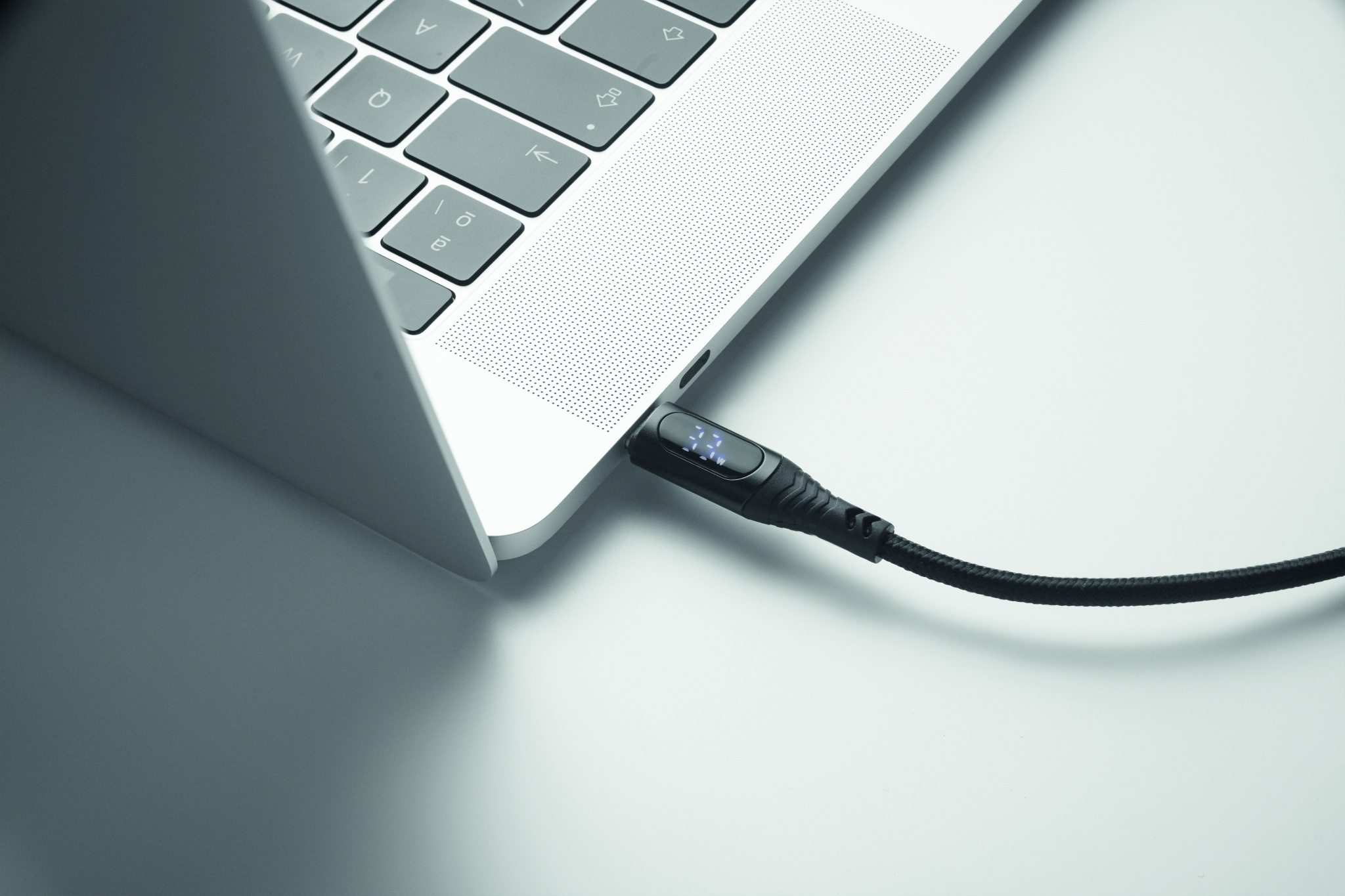 Up to 100W charging and data cable type-C to type-C with LED screen with charging power display feature. Length 1M.