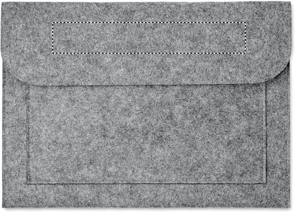 Documents bag or 15 inch laptop pouch in RPET felt, 2mm thick, with front pocket and hook and loop closing.