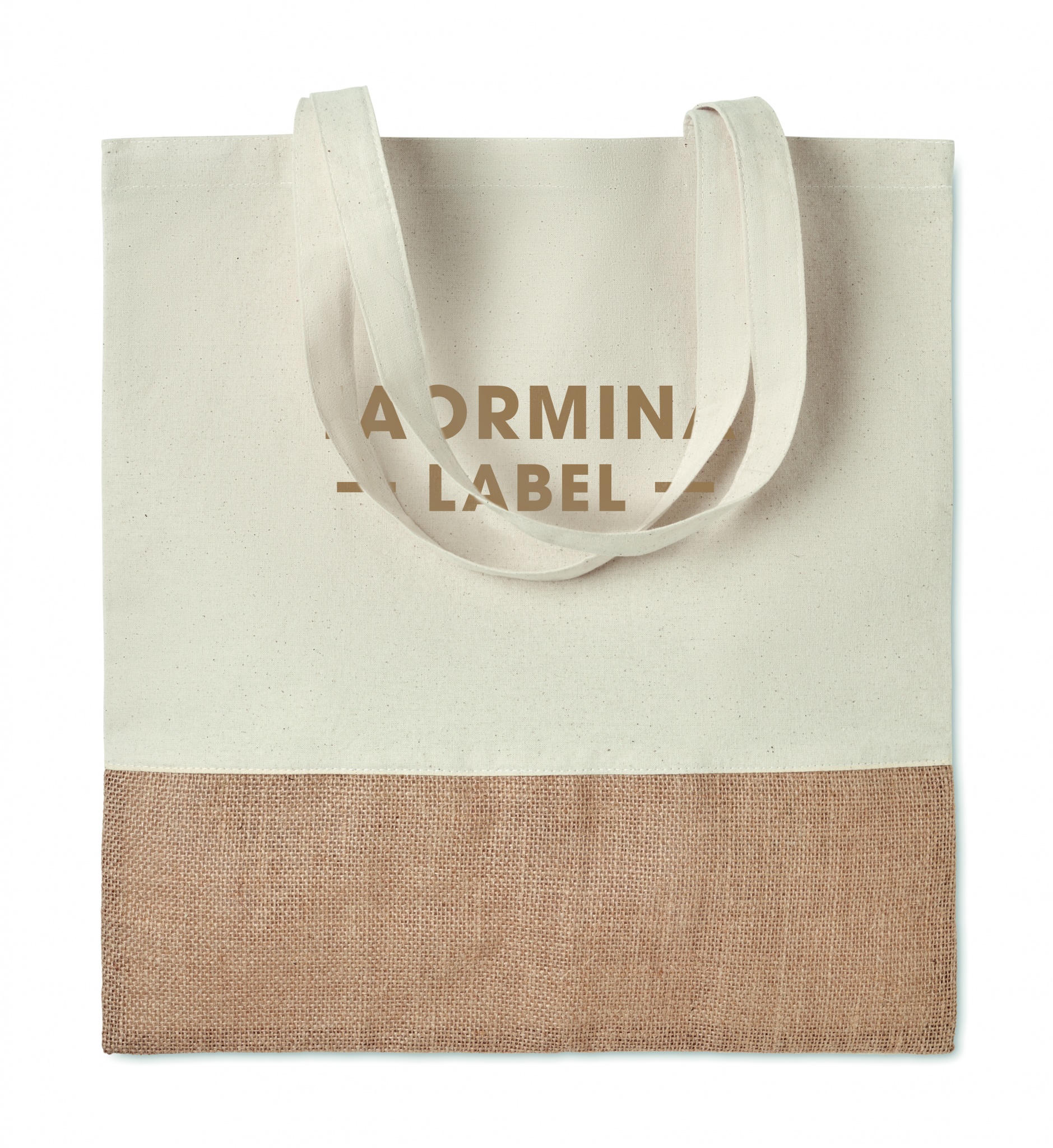 Twill cotton shopping bag with a jute detail. Long handles. 160 gr/m².