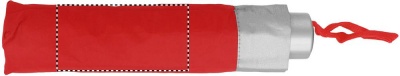 21 inch manual open umbrella in 190T polyester with zincify plating metal shaft and tips. Black plating metal ribs. Panels in colour with silver coating on back. Plastic handle in color with silver rim and black wrist strap. 3 sections fold. Includes matching pouch with silver trim. Manual closure.