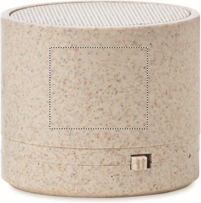 5.0 wireless speaker in wheat straw (35%) and ABS(65%) and LED light indication. 1 Rechargeable Lithium 300 mAh battery included. Output data: 3W, 3 Ohm and 5V. Playing time approx. 2h.