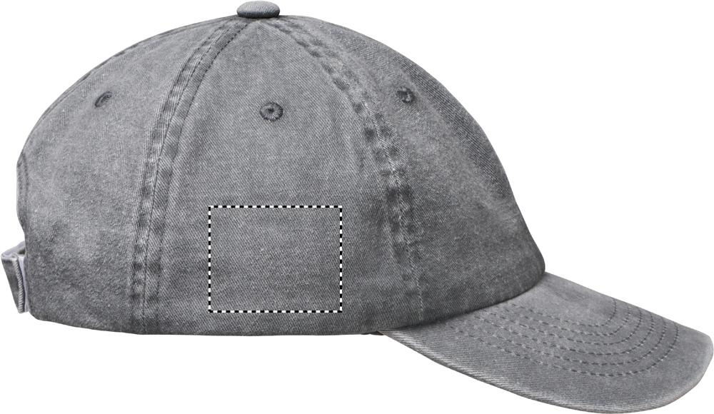 Vintage 6 panel baseball cap in washed cotton. 265 gr/m² with adjustable hook and loop closure. 6 stitched eyelets in matching colour. Size 7 1/4.