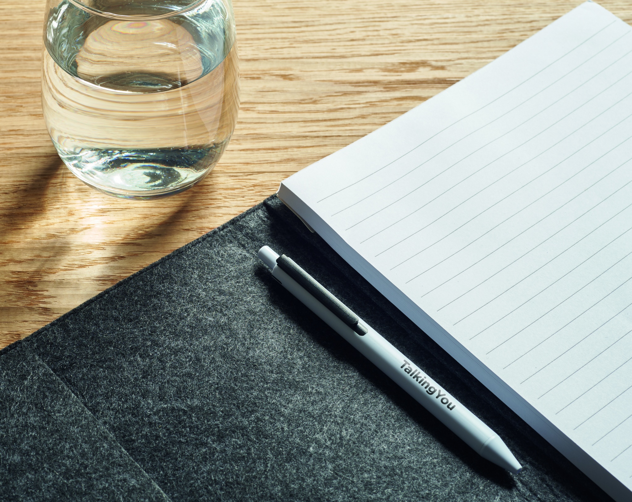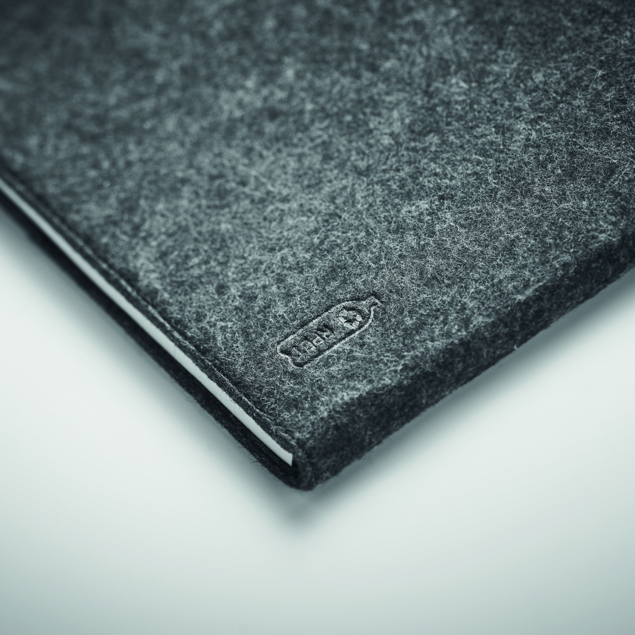 A4 conference folder in RPET felt. 100 lined sheets notepad with elastic pen holder.