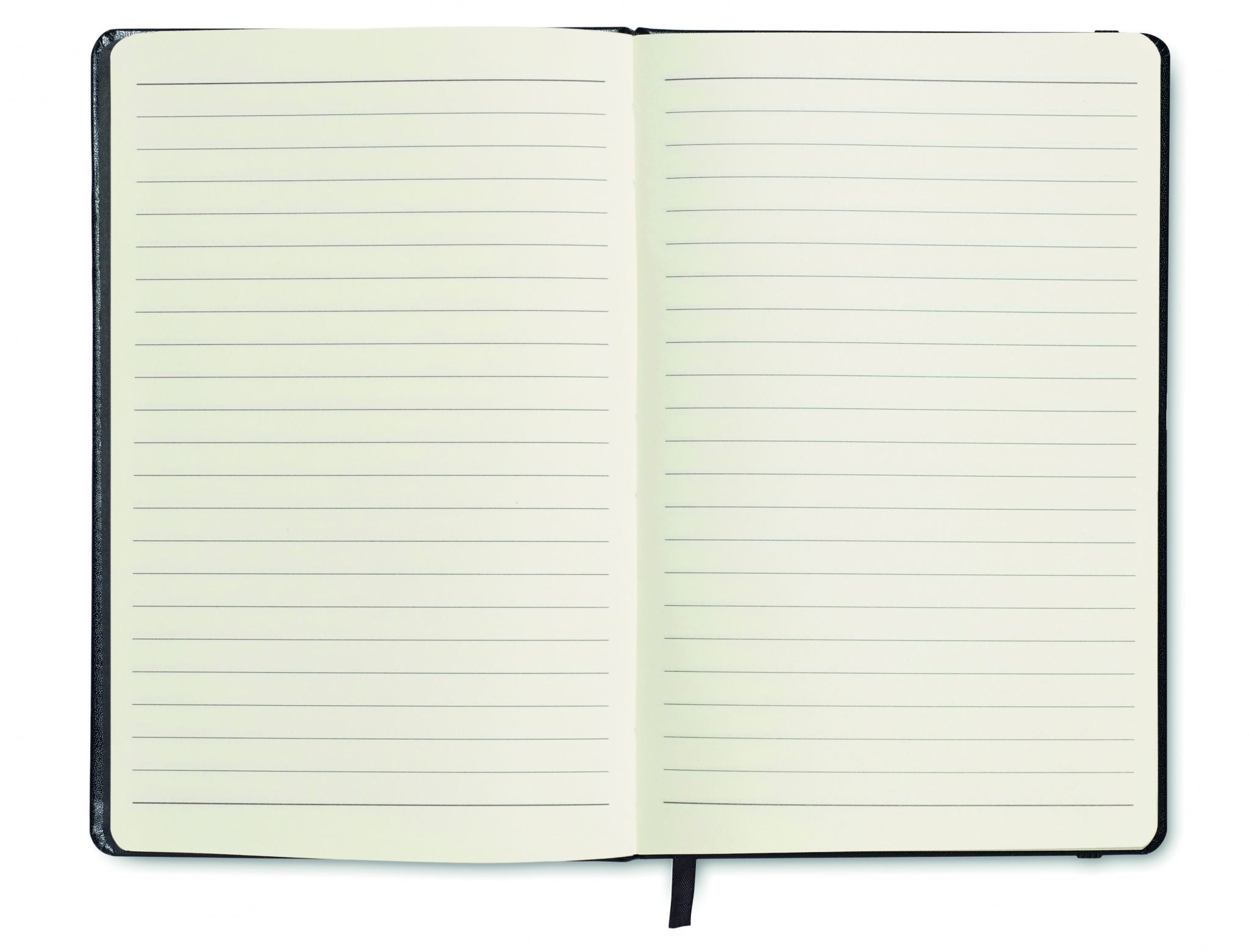 A6 notebook with hard PU cover. Casebound. 192 lined pages (96 sheets). Matching elastic closure strap and ribbon page-marker.