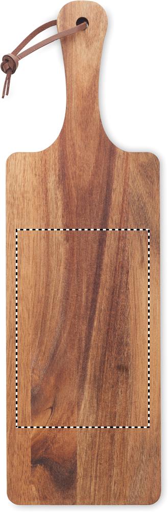 Acacia wood serving board with handle and PU cord. Wood is a natural product, there may be slight variations in colour and size per item, which can affect the final decoration outcome.