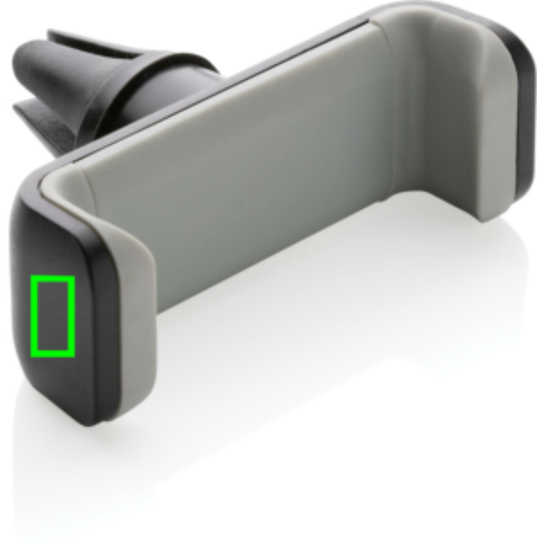 Universal and 360 degree rotatable car mount made with RCS (Recycled Claim Standard) certified recycled ABS. Total recycled content: 37% based on total item weight. RCS certification ensures a completely certified supply chain of the recycled materials. Simply click the item on your air vent and place your mobile phone (up to 6”) in the holder. Made out of heat resistant recycled ABS and strong silicone to make the item long lasting and prevent it from falling off your air vent while driving. With stainless steel mechanism inside to ensure your phone stays in place
