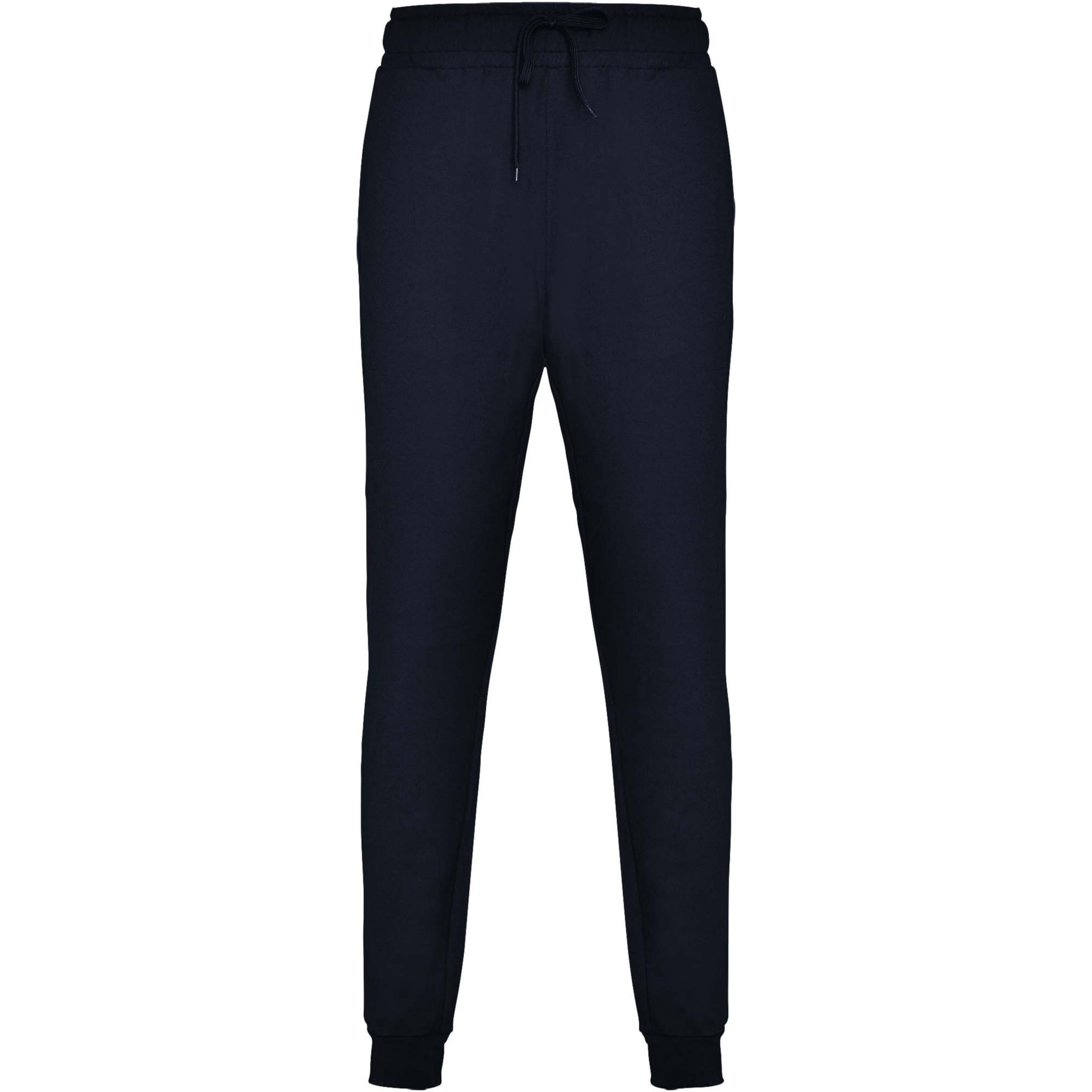 Sports trousers with wide adjustable waistband, drawcord, fitted cuffs on legs, reinforced seams, ribbed side pockets and corner back pocket with stitched view. Removable label.