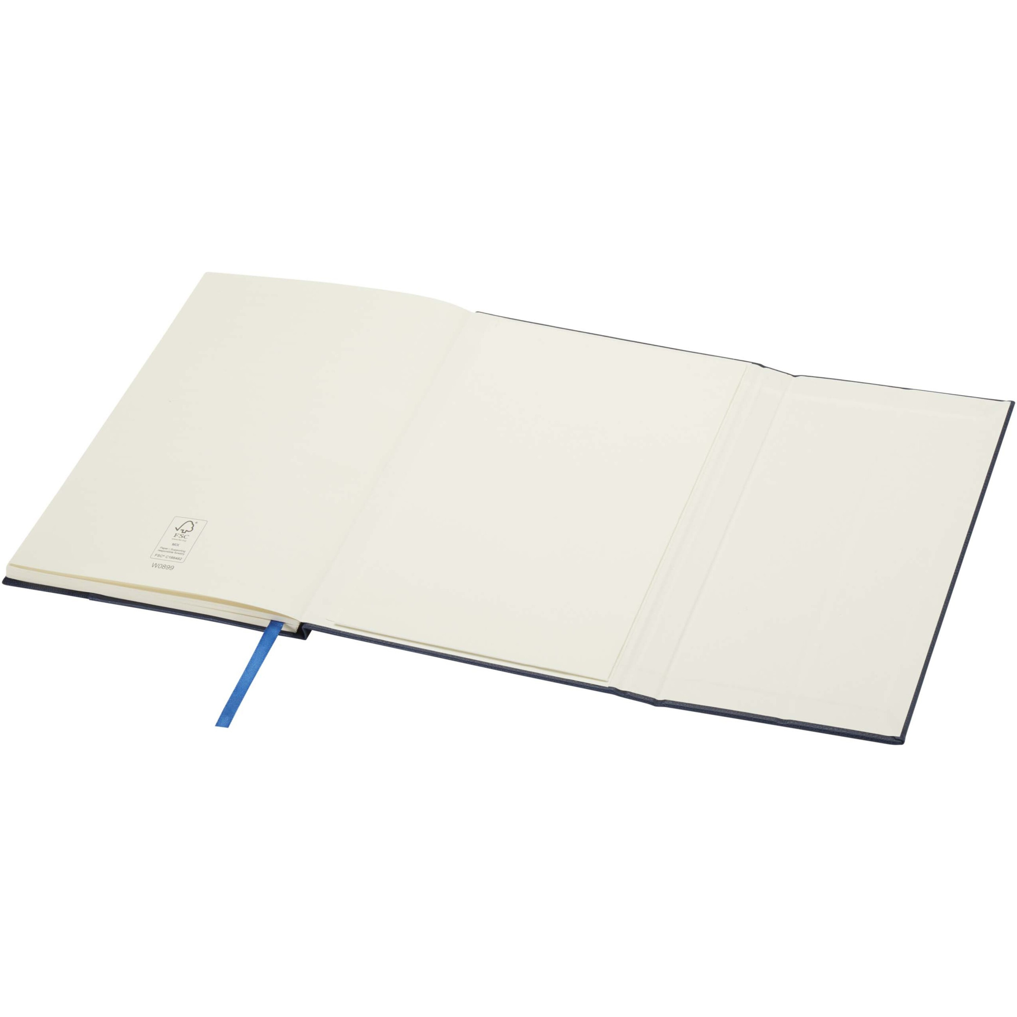 The Alejandra A5 hard cover notebook is made of recycled PU plastic and RPET with 80 lined sheets of 70 g/m² cream coloured paper, and features a ribbon marker and an accordion pocket.