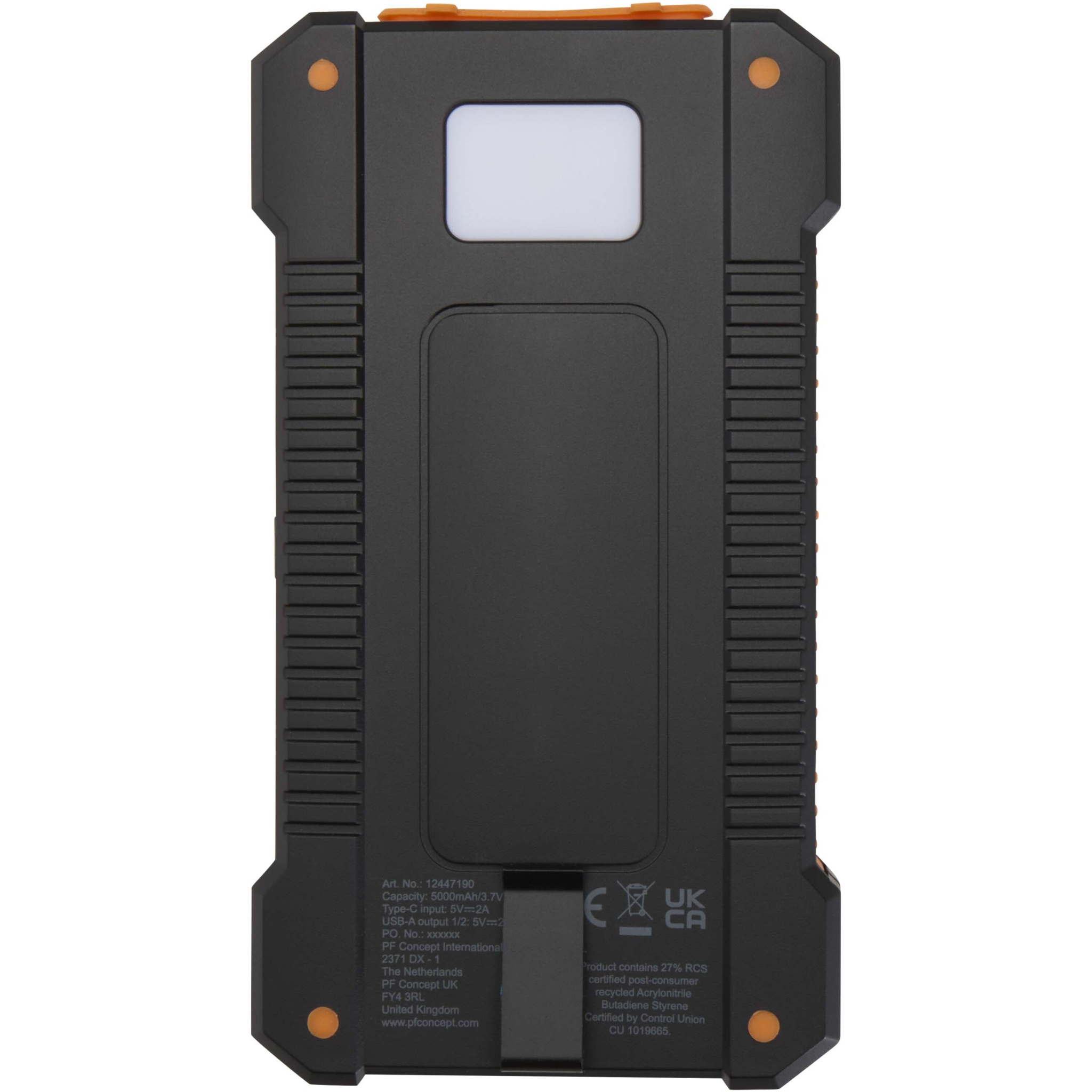 Logo trade advertising product photo of: Altair 5000 mAh 10W recycled plastic rugged solar power bank with built-in torch