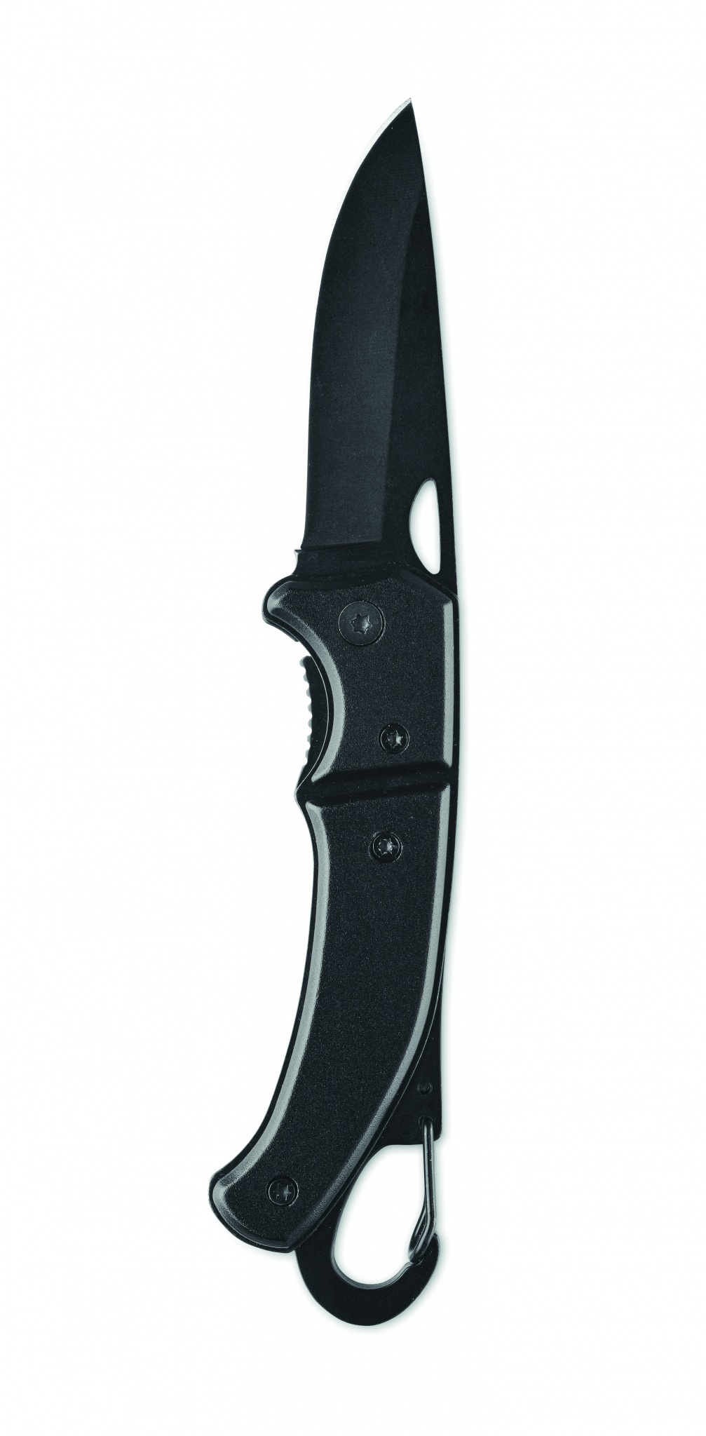 Aluminium foldable knife with carabiner. Blade in stainless steel. The carabiner is not for climbing (non-professional use).