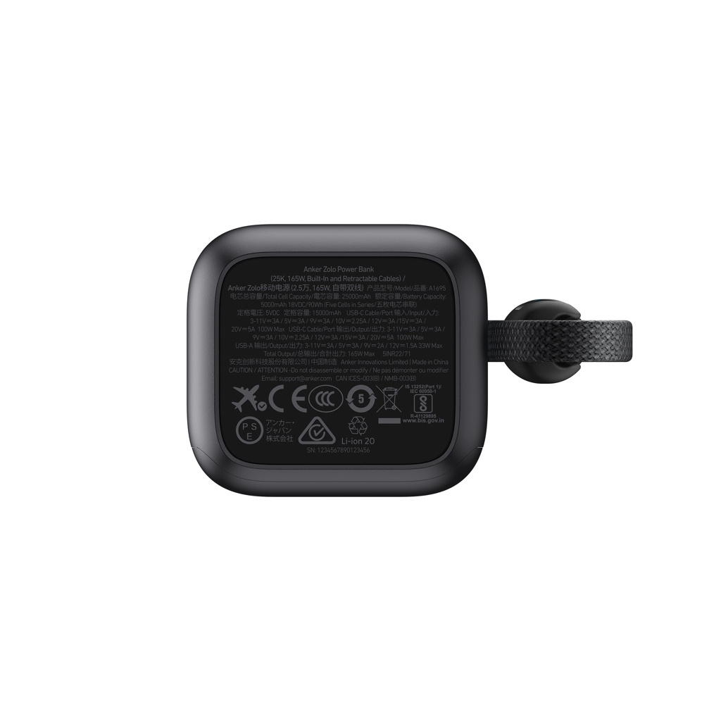 Anker Power Bank 25.000 mah 165W, Built-in retractable cable