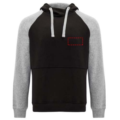 Two-colour unisex hoodie. Hood with crossed neck and metal eyelets. Contrasting inner hood, drawcord and raglan sleeves. Kangaroo pocket. Cuffs and hem in 1x1 elastane rib knit. Removable label.