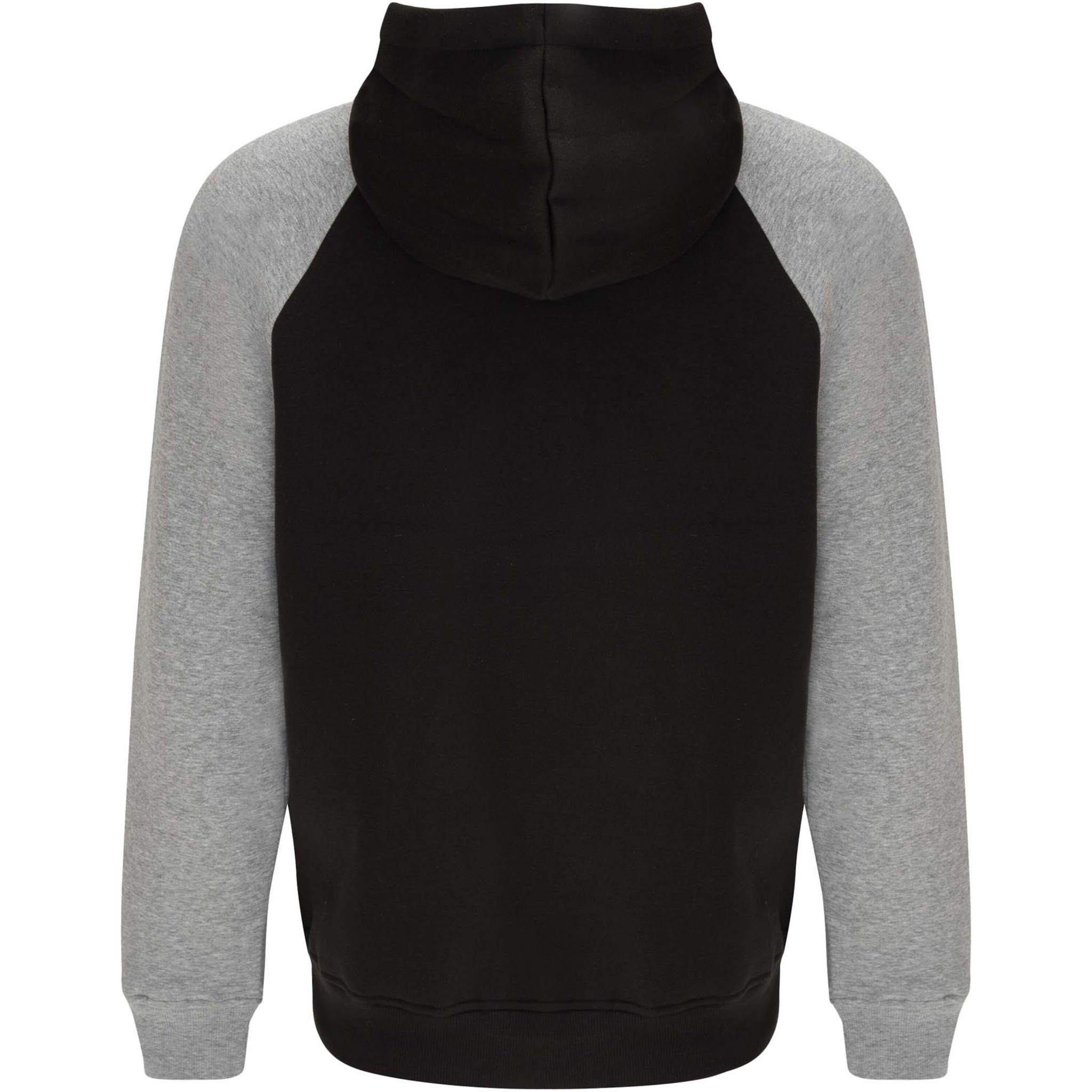 Two-colour unisex hoodie. Hood with crossed neck and metal eyelets. Contrasting inner hood, drawcord and raglan sleeves. Kangaroo pocket. Cuffs and hem in 1x1 elastane rib knit. Removable label.