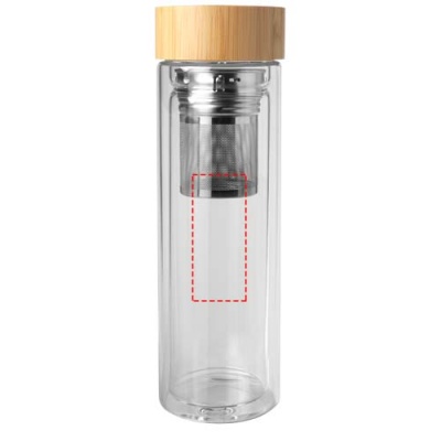 Double walled borosilicate glass water bottle with a tea infuser and bamboo lid. The bamboo used comes from sustainable, environmentally friendly and socially responsible sources. Volume capacity: 400 ml. Delivered in a recycled cardboard box.