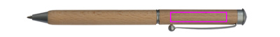 Twist mechanism wooden ballpen with blue-writing metal refill and wooden case. Your logo is engraved below the clip.