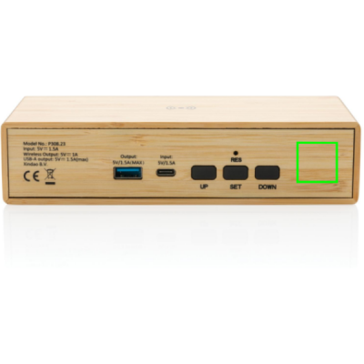 Bamboo alarm clock with 5W wireless charger