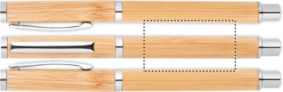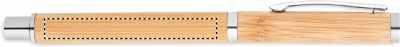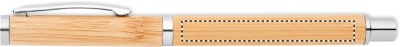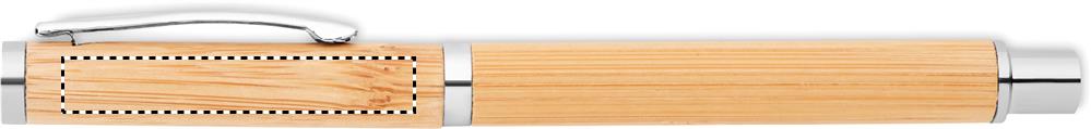 Bamboo barrel roller ball pen with stainless steel fittings. Blue gel ink. Bamboo is a natural product, there may be slight variations in colour and size per item, which can affect the final decoration outcome.
