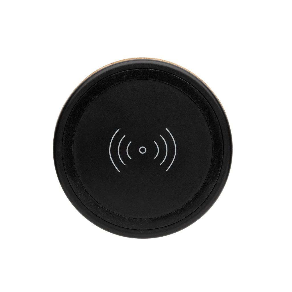 This ECO bamboo charger combines listening to your favorite tunes with charging your phone wirelessly. Simply connect the included 150 cm micro cable to your USB charger at home or in the office and you are ready to go. It contains a 3W wireless speaker and a 5W wireless charger. The speaker has a 400 mAh battery and BT 4.2 that allows a playtime up to 3 hours and operating distance up to 10 metres. When using both functions simultaneously, make sure the item is connected to a power source. Wireless charging compatible with all QI enabled devices like Android latest generation, iPhone 8 and up. Input: 5V/1A, Wireless output: 5V/1A 5W