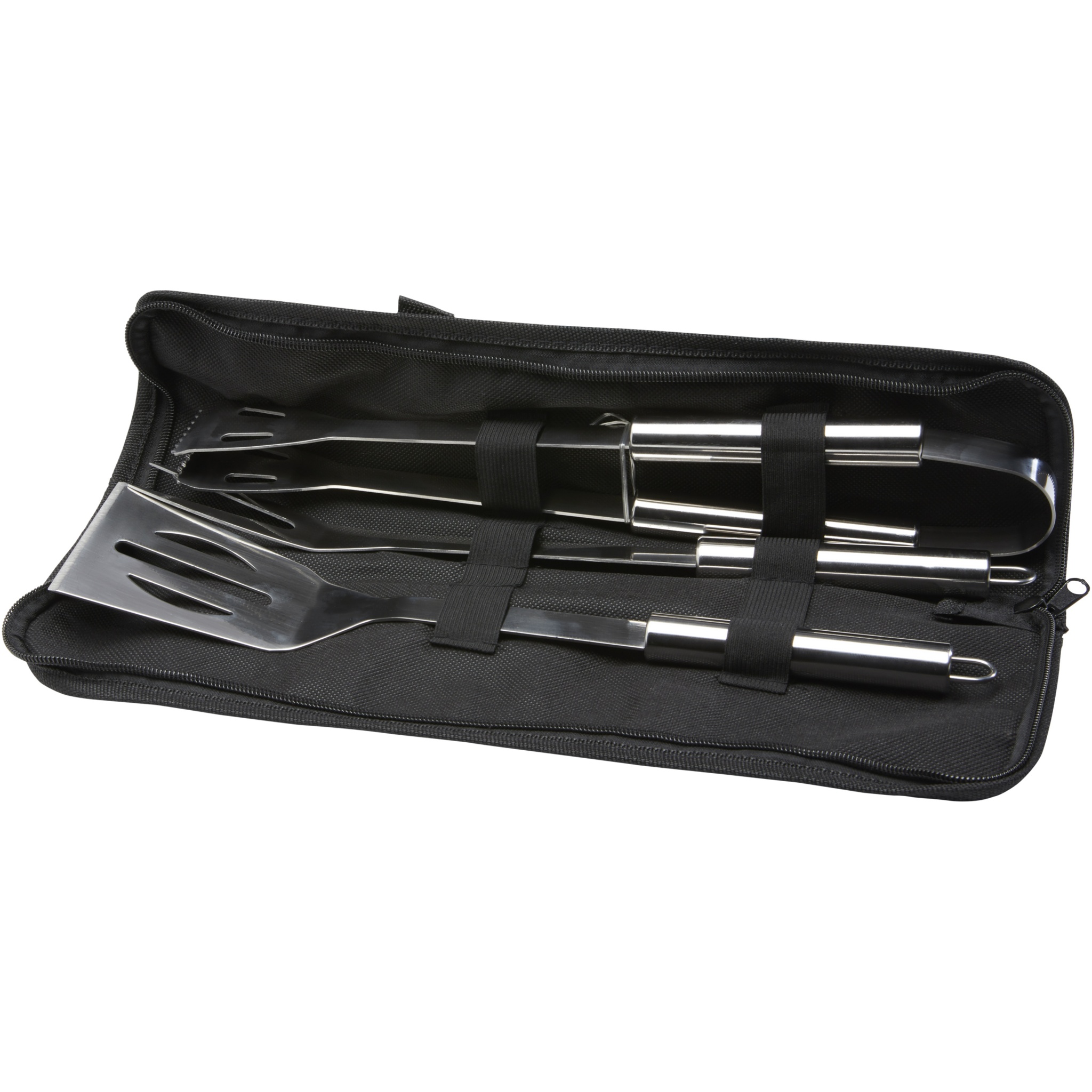 3-piece BBQ set with shovel (34.8 x 7.5 cm), fork (35.4 x 3.35 cm), and a tong (35 x 6.8 x 4 cm). All accessories are delivered in a lightweight case to make it easy to carry and store away. The perfect BBQ accessory for the garden or to bring along for some outdoor grilling with friends and family.
