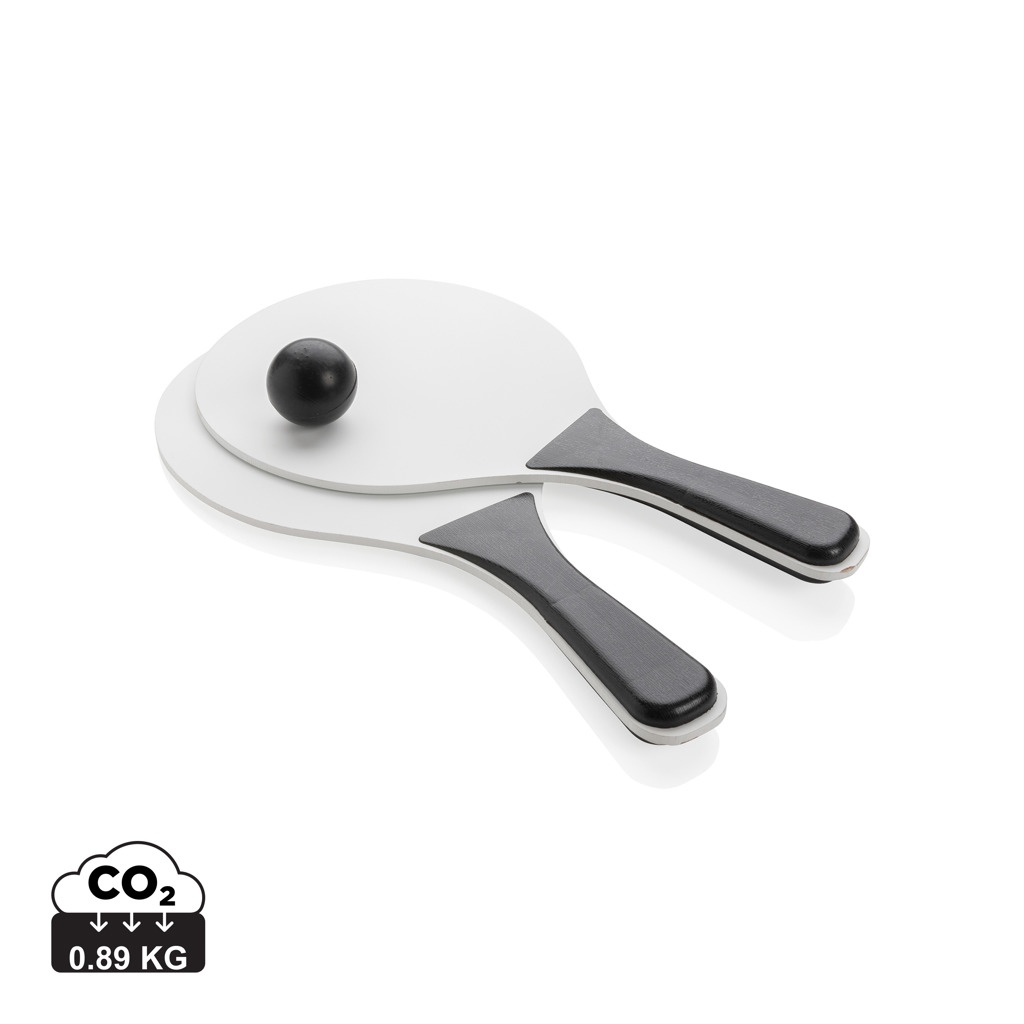 MDF beach ball set with PP handle. Packed in net including 1 ball.