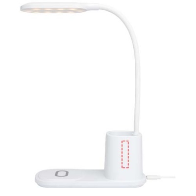 Desk lamp with an integrated wireless charger and pencil holder. The lamp has 3 lightning settings (warm/cold/medium) and can be adjusted in height. The charger has 10W wireless output and is compatible with all Qi devices (iPhone 8 or above and Android devices that supports wireless charging).