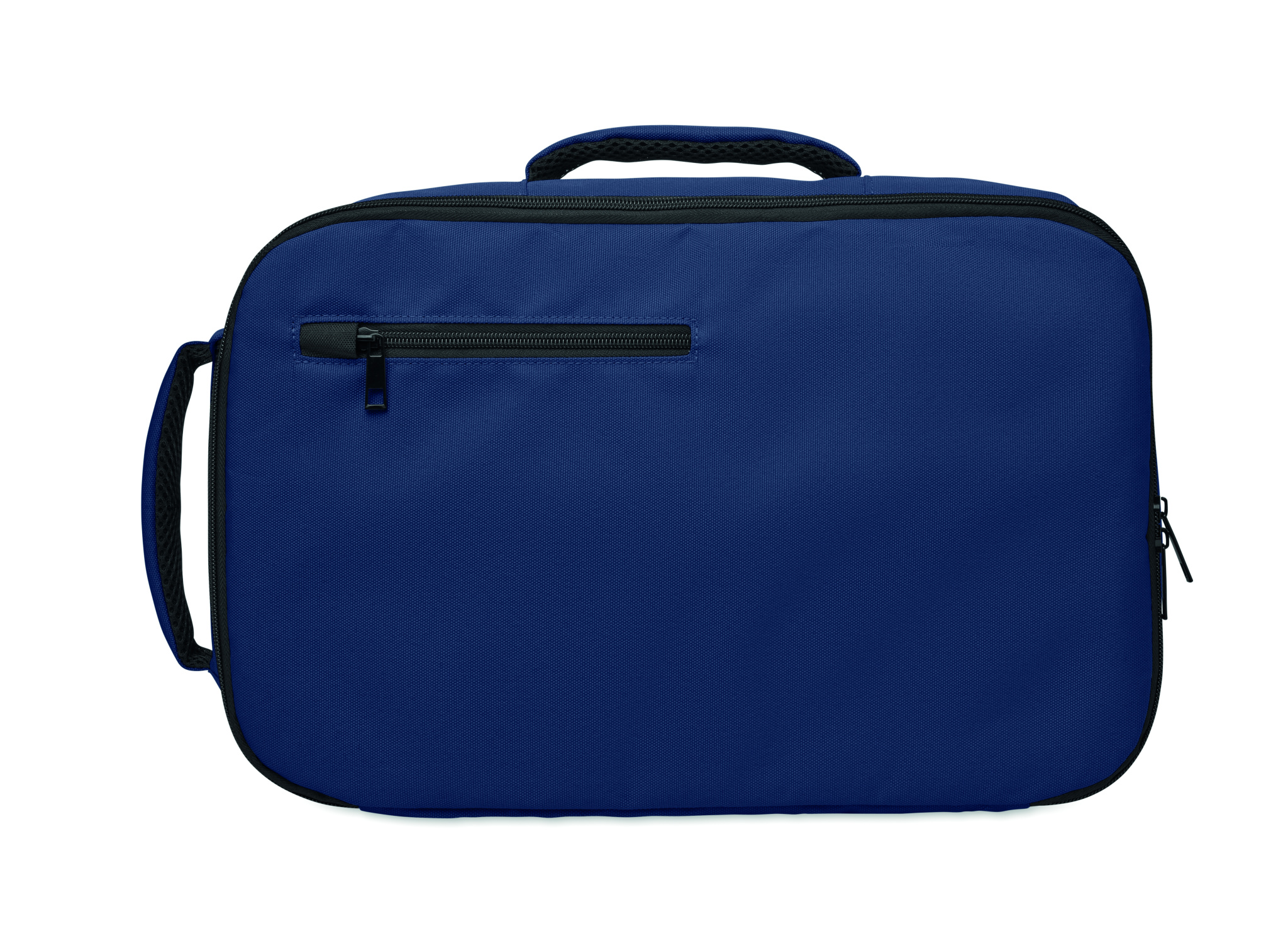 "Cabin-size carry-on extendable backpack made of 600D RPET polyester with 180o opening. Features a main compartment with two open sections, mesh division, padded 15"" laptop pocket, and luggage strap."