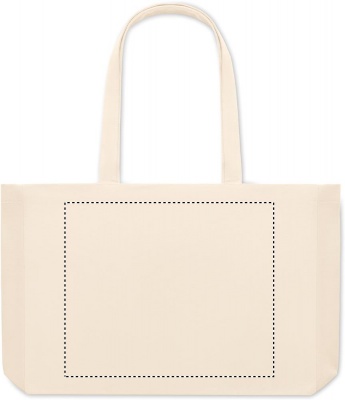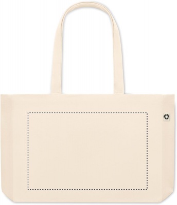 Recycled canvas shopping bag or beach bag, 50% cotton and 50% recycled cotton with long handles and gusset. 280 gr/m².