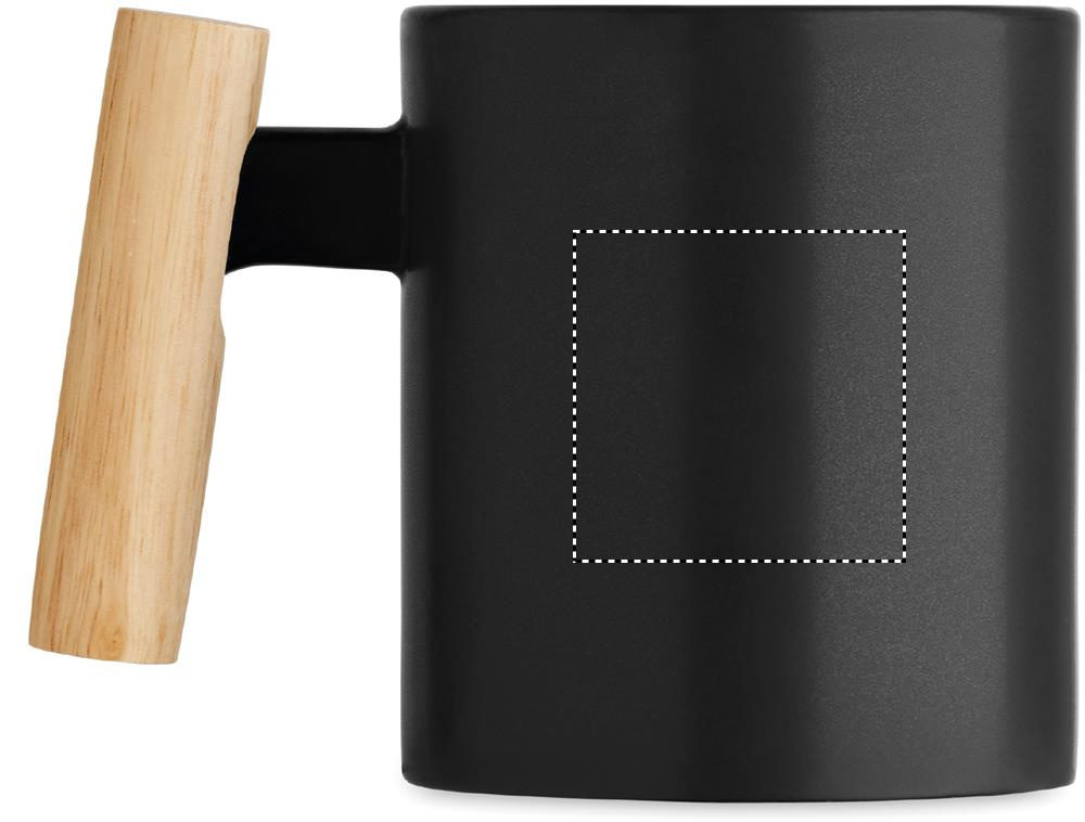 Ceramic mug with wooden handle. Capacity: 320ml. Individual packed in white carton box. Hand wash only.