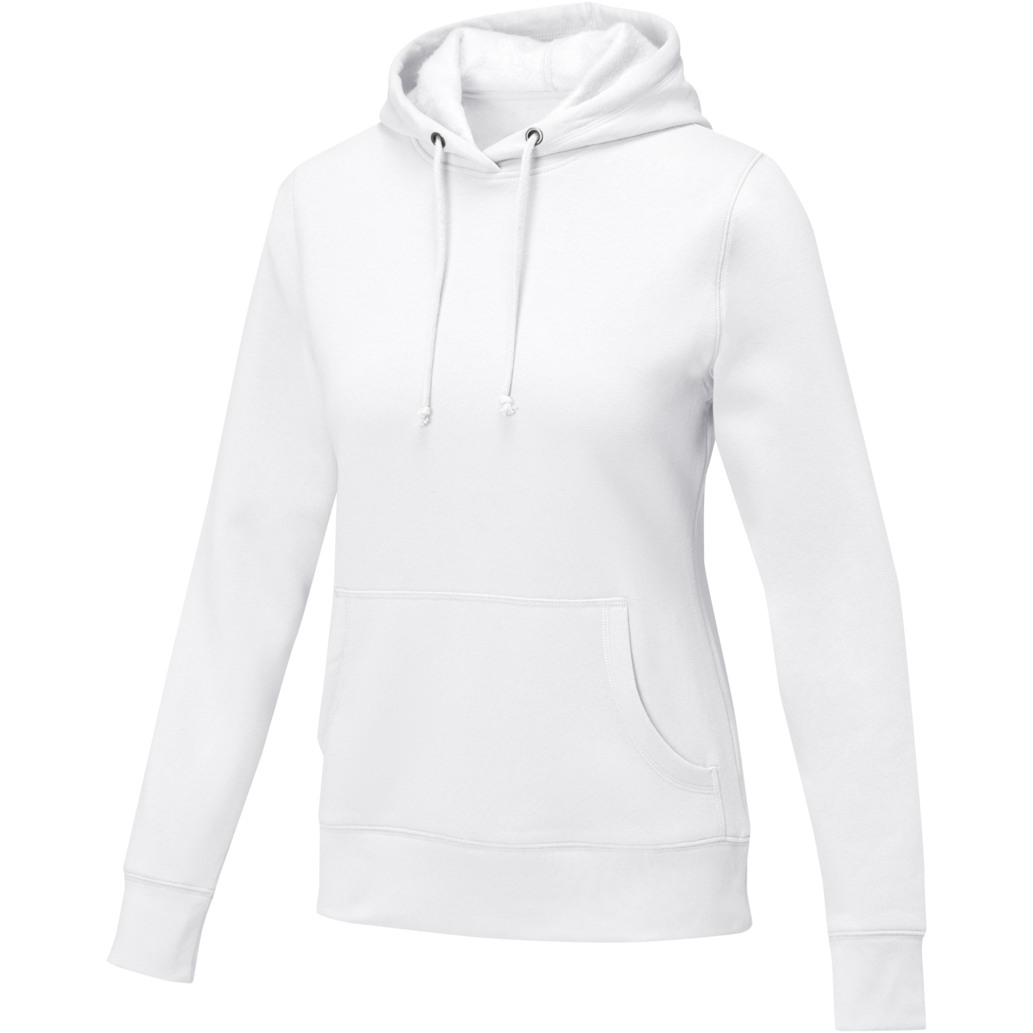 The Charon women's hoodie – the ultimate comfortable style. Made from a 240 g/m² blend of cotton and polyester, a perfect balance between comfort and breathability. The brushed interior ensures coziness, complemented by flat knit rib cuffs and bottom hem that optimize comfort. The adjustable drawstring in the hood offers a personalised fit, while the kangaroo pocket adds a touch of functionality and urban flair. Additionally, the interior custom branding options allow personalised branding or customisation inside the hoodie. Whether you're relaxing at home or heading out for a casual adventure, the Charon hoodie is the ideal companion for any setting. This hoodie is designed with a fitted shape for a feminine look.