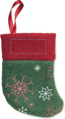 Christmas dessert cutlery set including fork and spoon in stainless steel with a 150 gr/m² cotton napkin. Presented in a Christmas stocking shaped pouch.