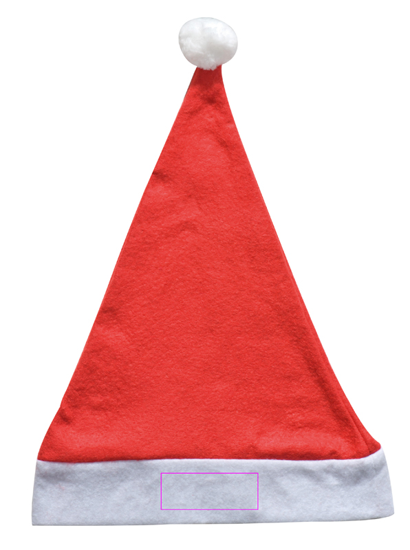 Christmas hat made of felt. Your advertising message will be screen printed on the white edge of the cap.
