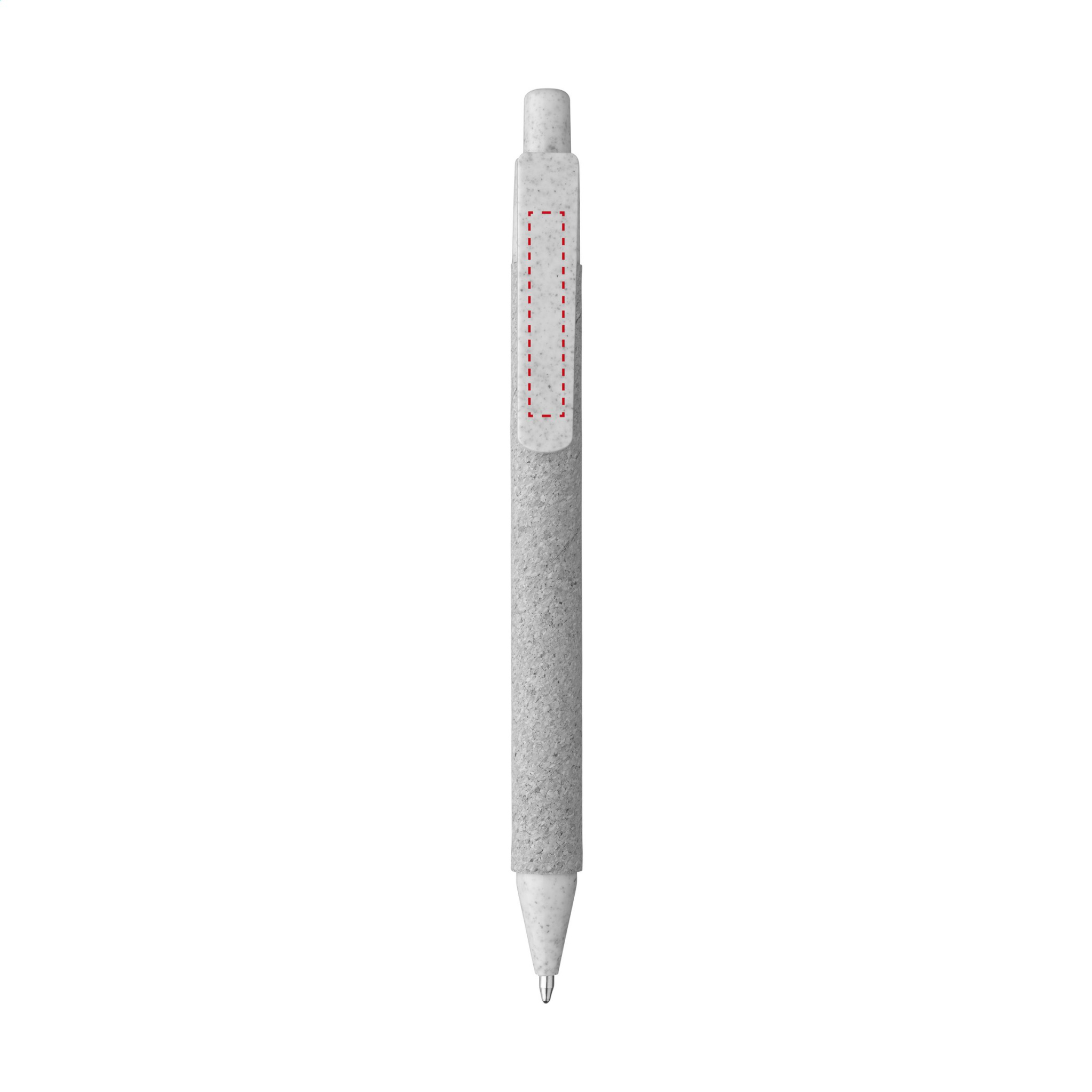 WoW! Blue ink ballpoint pen with a barrel made from cork. The point, top, push button and clip are made from 50% PP and 50% wheat straw. Partly biodegradable.