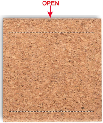 Sticky note memo pad with cork envelope cover. 125 sheets of large yellow sticky notes pads and 25 sheets of 5 assorted colours page markers. Cork is 100% natural material. Due to its structural nature and surface porosity the final print result per item may have deviations.