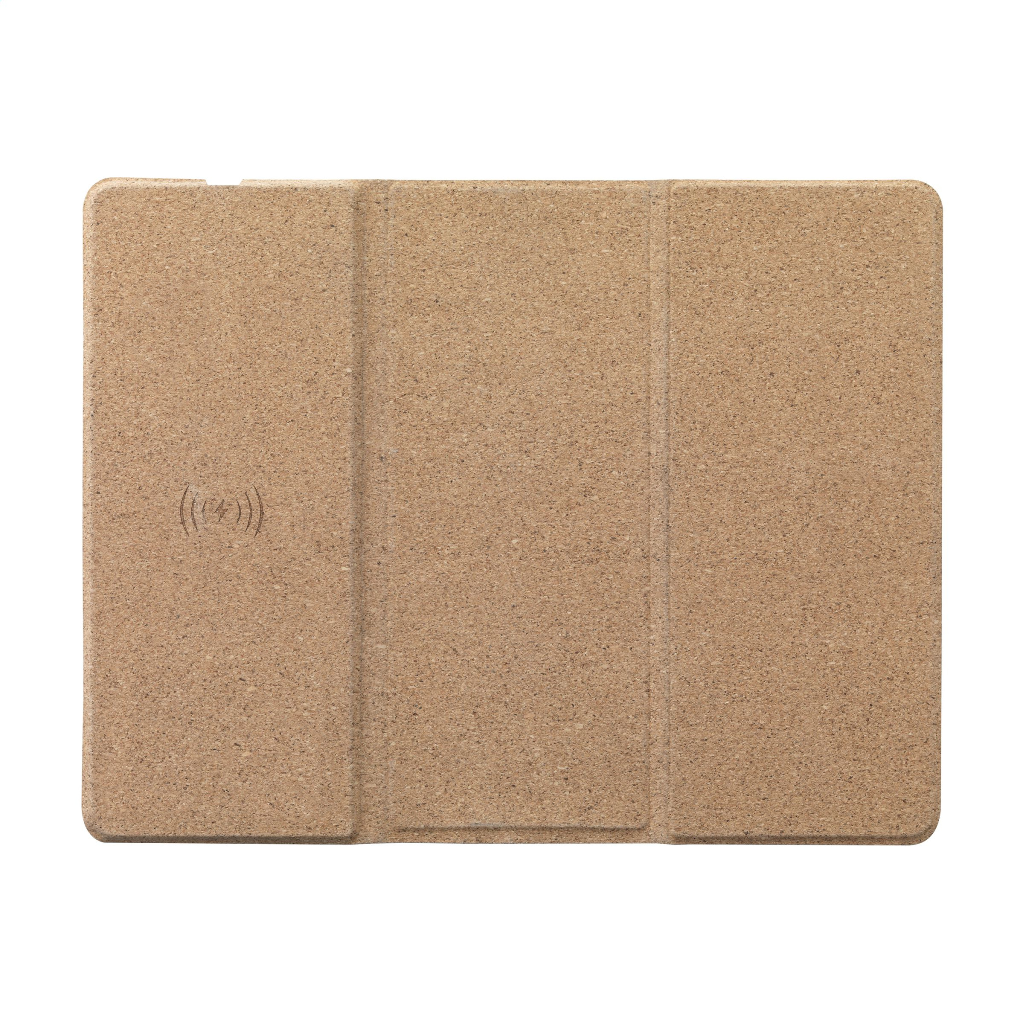 Multifunctional, wireless 10W charger mousepad. The sustainable exterior of this modern mousepad is made from eco-friendly cork. You can efforlessly navigate your mouse and charge your smartphone on this cork mouse pad. Can also be used as a phone stand. Compatible with all mobile devices that support QI wireless charging (newest generations Android and iPhone). Input 9V/2A. Wireless output 5V/10W. Includes PVC-free cable (TPE) with micro-USB connector and user manual. Each item is supplied in an individual brown cardboard box.