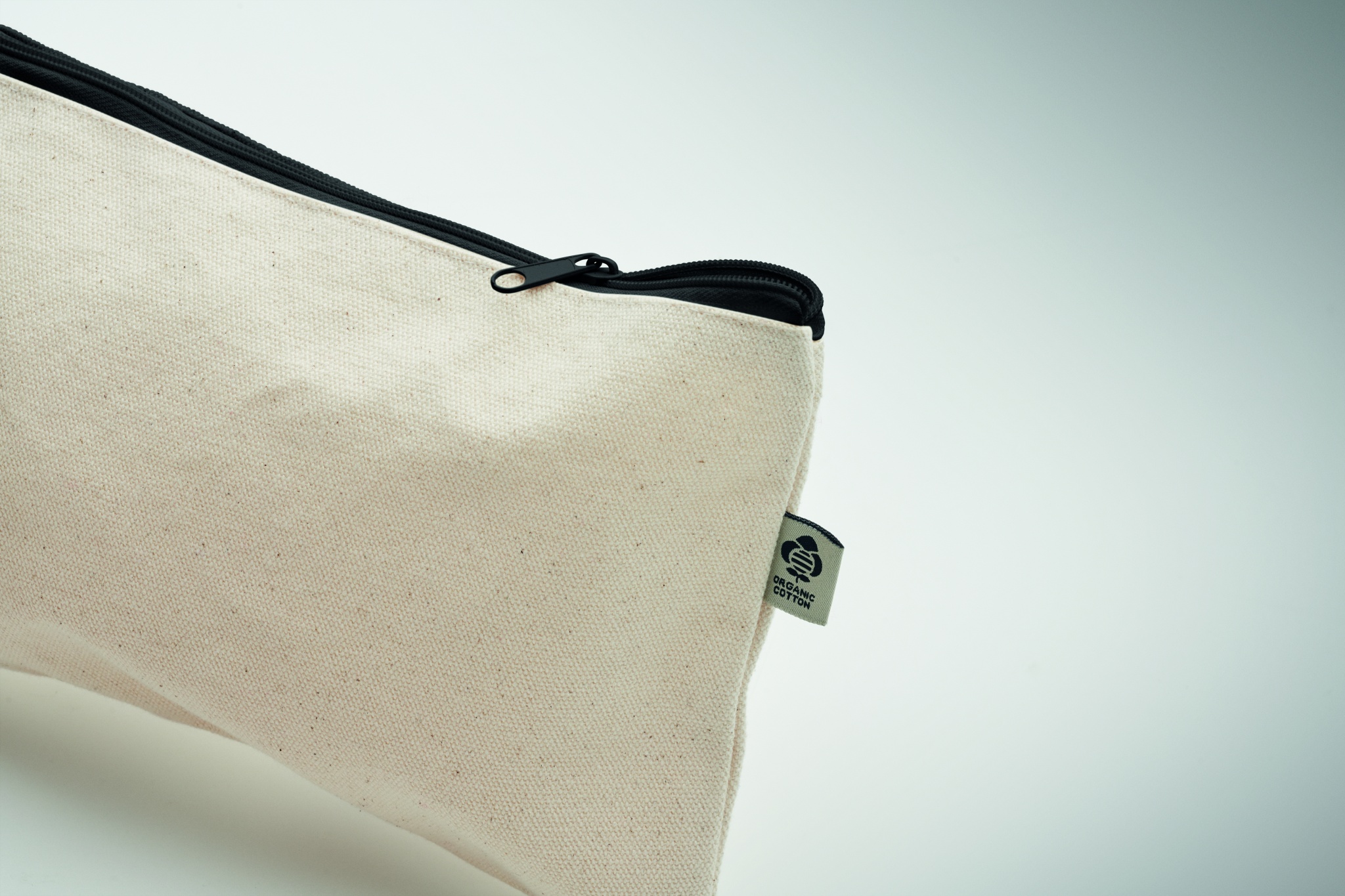 Cosmetic bag in organic cotton with coloured zipper. 340 gr/m².