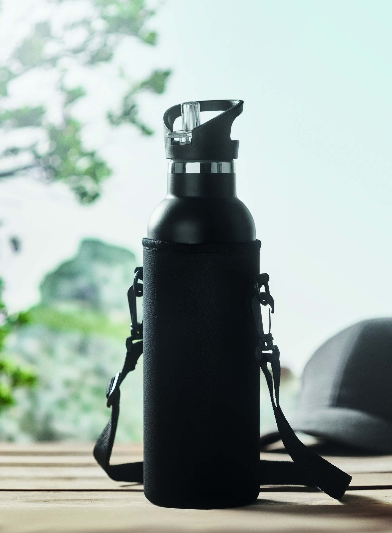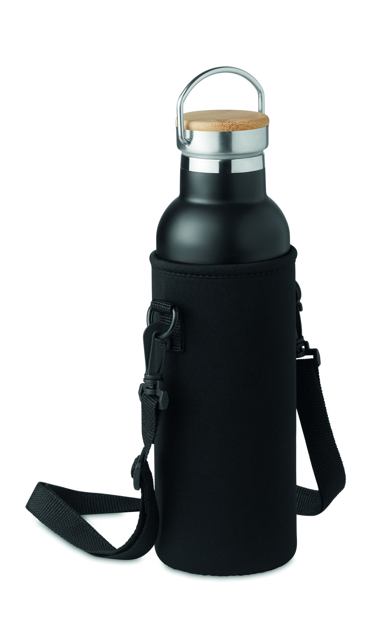 Insulated stainless steel flask with non-leak screw cap and additional interchangeable built-in straw cap. Supplied with neoprene carrying bag. Capacity: 700 ml.