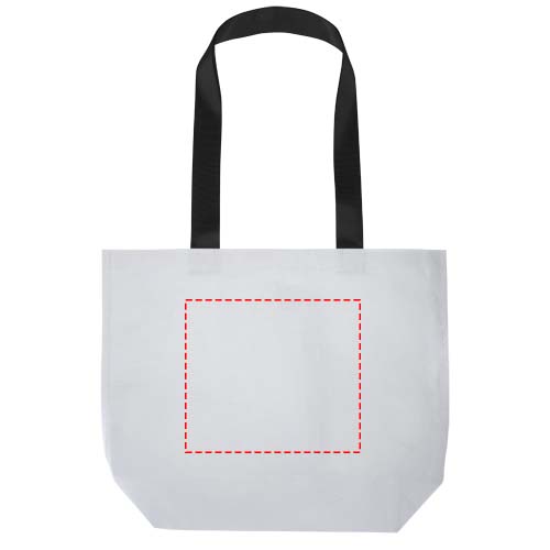 The Duo double laminated bottom tote bag is made from 150 g/m2 GRS certified RPET with double lamination, and offers enhanced durability and water resistance when it counts. It features a spacious open main compartment, sturdy reinforced handles, and a wide bottom for added capacity. Designed to carry up to 10 kg, it's a stylish and reliable option for daily errands, trade shows, or promotional events. Volume capacity: 18 litres.